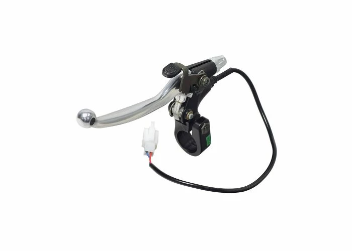 The locking 2-wire brake lever for electric scooters from Wuxing features a polished metal handle and a 13″ two-wire connector