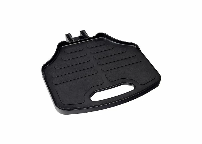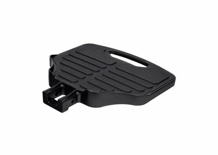 The foot plate (or “footrest platform”) is a style of footrest assembly used on many power chairs in lieu of elevating leg rests