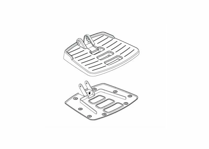 This assembly includes both the top and base portions of the footrest platform, as well as assembly hardware.