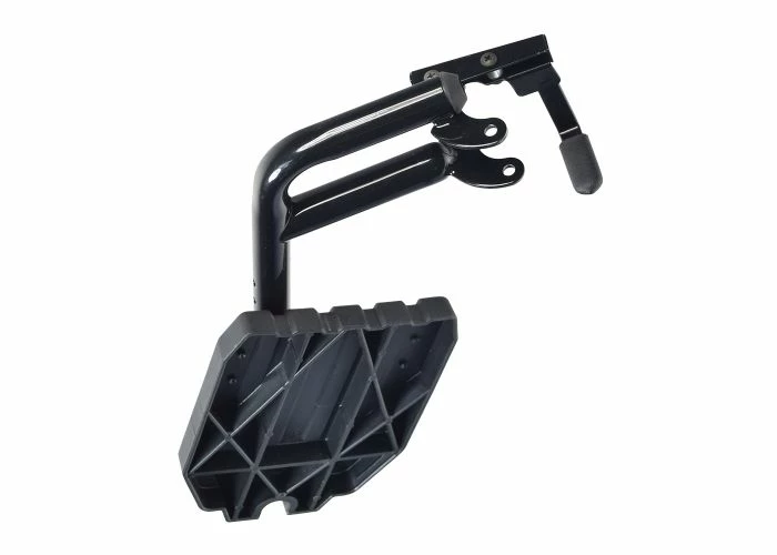 This set of two swing-away leg rest assembly for the Invacare Pronto series power chairs with an 18″ front rigging frame width is a complete set of two leg rests, one for the left side and one for the right